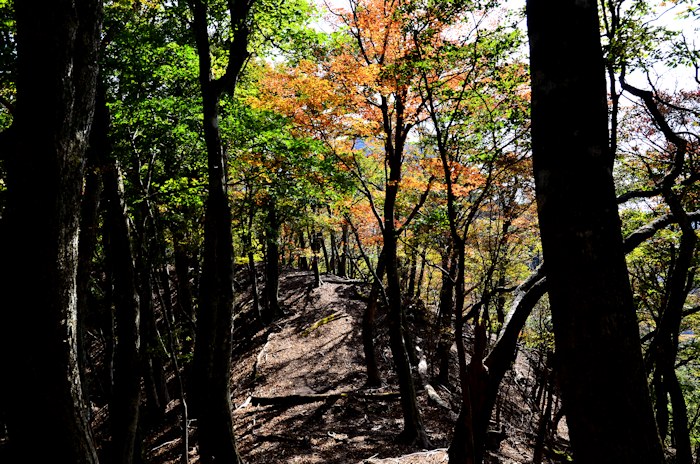 ![]() (16)登山道に沿って緑の中に紅葉が点在して、これはこれでなかなか綺麗。 |