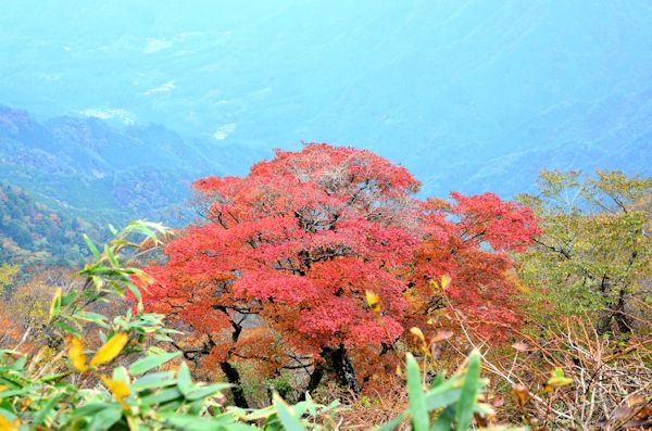 ![]() (9)障子岳山頂より。落葉が進んでいますがそれなりに綺麗でした。 |