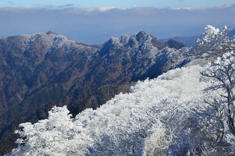 | ハーフマラソンを控えていたこともあり年明けから3回連続由布岳、今回は土曜日から日曜日にかけて雪が降ってそうだったので東登山口から登ってみようか、などと訪問して頂いている皆様から「そろそろ他の山にのぼらんかい!」とどやされそうな気がしないでも無く、しばらくは気に掛ける行事も特にないので年末以来ご無沙汰している祖母山へ。結局そこか!と突っ込まれそうですがご容赦ねがいます。 それと、ここのところ由布岳にはでスピード重視で登っていたので、少しザックも軽量化。果たして冬期キャンピング仕様でのぼれるん?と自問自答。とりあえず、最低限のテント泊できる荷物と食料をザックに詰め込みました。本番では、これにビール、焼酎、三脚、レンズで3〜4kgほど増えそうです。 年末の大雪で雪が深いと聞いていたので、「祖母傾最新情報」で確認するといずれのルートもトレースが出来ているので大丈夫とのこと。それならと、久方ぶりに黒金尾根経由で登ることにしました。このルートについては数年前に難儀したルートでもりますが、特に難儀する1,400m以上のルートは頭の中に焼き付けているので、とにかく突っ込んでみることにしました。確かに、登山道は圧雪舗装状態で雪の抵抗はほとんどありません。 しかしながら、縦走路に近づくにつれスズタケがグチャグチャに倒れた所もあり、ルートから外れた踏み跡があったり、なんだかんだ言ってもそれなりに難儀する場所があります。縦走路にでてからもスズタケが倒れ、その上に雪が圧雪状態となり日頃とは随分見慣れない風景で自分が一瞬どこに居るのか分からなくなってしまいそうな感覚にも陥り、スズタケをラッセルするのは相変わらずです。それでも時間的には順調で、心配していたハシゴ場も想定していたほど雪も無くスムーズに通過できました。 今回も由布岳にしようかな〜、と考えたのは天気予報が微妙だったこともあります。実際、夜中大分市まで向かう途中、高速ではかなりの吹雪で天気予報も概ね午後からしか回復しないとのこと。それと、最近の悩み事はPM2.5。天気は土曜日の方が良いようにも感じましたがPM2.5濃度は濃く、予報では日曜日は少ないけど天気はイマイチと捻れ状態なのであります。 まぁ、行ってみてどうしようも無ければ撤退すればいいし、上の方は雨ではなく雪なんで・・・と言い聞かせながら登山口まで向かったところです。 ということで、山頂に10時ちょっと過ぎに到着しても、時折ちらっと青空見えるくらいで写真を撮るほどでも無いし、下界はガスで見えないし・・・お湯を沸かしながら時を待つことに。お湯が沸いた頃に2人組の方が登ってこれられ、昨日は天場泊とのこと。 山頂でお会いしたのは結局このお二人で、人気が無いのでガスが晴れるよう山頂で踊っていると何となく青空の気配も増えたような気もしますが、所詮、撃沈男ですから1時間ほど山頂に滞在の後、ガスがスッキリしない山頂を後にしました。 ところが、です。小屋も近くなったころ急に晴れ始め、晴れ始めた直後の空って空気が入れ替わった直後なのか、何処までも青く、樹氷は白くそれこそ誰も登ってこない山の中で大騒ぎしていました。思わず、井上陽水の「東へ西へ」の「花見の駅で待ってる君にやっとの思いで会えた、満開花は満開君は嬉しさ余って気がふれる♪」の歌詞を思い出しました。樹氷は綺麗で、満開で、青空に映えて、ずーっと一人で大騒ぎです。いや〜、一人で楽しむには勿体ない景色でした。 下っているとなんとも言えない違和感を膝に感じ、テーピングしているのに・・・と思いながらもアイスバーン状態の雪もあったので日頃は下りでは使用しないストックを使用していましたので、よく解らんけど雪が少なくなった時点でストックを仕舞っていつものように歩き始めると、なんだか痛みも引き日頃と違うことをするとどこかに負担がかかることを実感しました。 話は変わり、18時前に帰宅し片付けるのも後回しに大相撲初場所観戦。なんと言っても注目は稀勢の里ですが解説の方の予感が的中しあえなく3敗でこれで今場所の綱取りは無し。今日の見所は、もしかして頑張ってくれるかな〜と期待した対白鵬戦の松鳳山は番狂わせ無く2敗目となり、優勝争いという視点では面白みが半減した初場所。後は、誰が白鵬を倒すか、遠藤、大砂嵐、小兵の里山あたりの相撲に、十両では千代丸に注目と言ったところになりそうです。 |