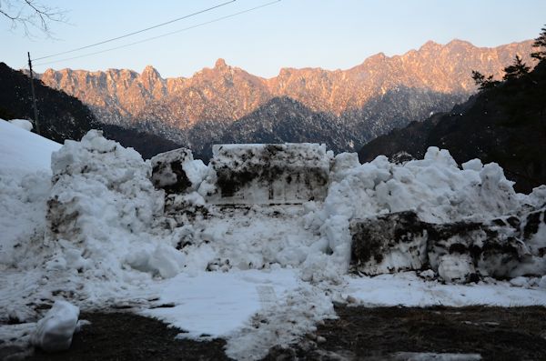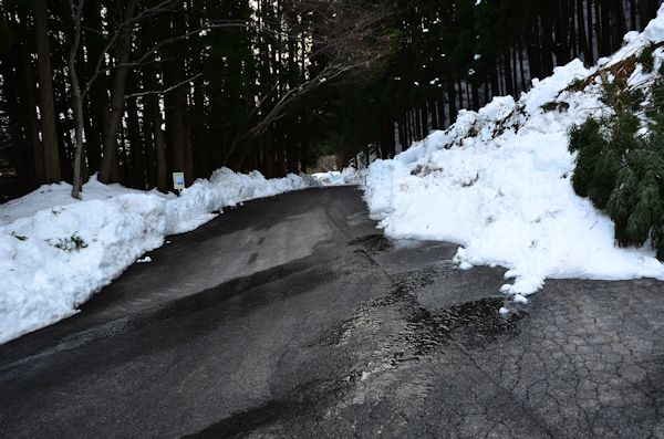 ![]() (7)道路の両側も雪が残っています。 |