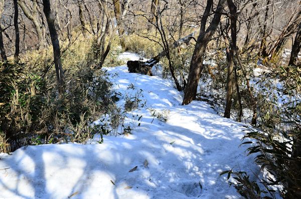 ![]() (19)雪残る縦走路を古祖母山から尾平越え方面へ。 |
