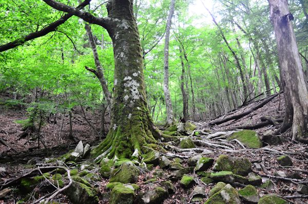 ![]() (1)目印にもなているブナ |