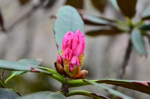 ![]() (11)黒金尾根縦走路出合いのアケボノツツジ。 3割程度が開花。蕾も間もなく開花しそうです。 ![]() (12)蕾の様子。 |