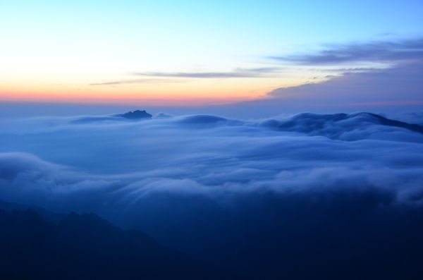 | 未消化に終わったGWを取り戻すべく、祖母山にテント泊するつもりで、すっかり準備もでき今ひとつの天気予報も夕方には回復しそうなので、夕方までに祖母山頂に到着し、夕焼けを堪能し、翌朝は早朝から星空を楽しむぜ〜 と妄想は膨らむばかり。 でしたが、急な所用。 妄想に取り憑かれ諦めの悪い自分は、夕方、用事を終えると同時に、車に飛び乗り尾平登山口に馳せました。20時頃登山口に着くと、駐車場ではテントを張り盛り上がっている方々もいます。それを横目に車中泊。やはり、ご来光は見たいので1時には出立の予定、ということは0時には起床、0時半過ぎに出立。 前回同様、宮原ルートを経由です。ペース配分が悪いのか、宮原分岐ですでにバテバテ。座り込んで、しばらく茫然自失状態で木々の影を落とす月光に照らされる足元を見つめていました。ここからは、少しペースを落とし、昨日の雨で滑りやすくなった登山道を登っていきます。 テン場には1張りのテント。家主は後ほど、夜明け前に山頂に来られ、一緒にご来光を頂きました。 3時半に山頂に到着。山々と東西にたなびくガスが月光に照らされ、期待出来そうな空模様です。ただ、星空を撮影するには、少々月光が眩しい・・・その後は、次第に夜の戸張が開け、馬蹄形を埋め尽くすガスは本谷から障子尾根方面に流れ、結局、3時間ほど祖母していました。 ガスも消えたので、どこまで行こうか思案しながら、ぼちぼち残ったアケボノツツジを見物しながら、縦走路へ。アケボノツツジは1,600m以下ではほとんど終了、その上も昨日の雨などで散り、日当たり、風当たりなどが良かった場所で、残っている程度で、それも近くで見ると、もう一雨でほとんど終わりそうです。 九合目小屋の小屋番さんが言っていたように、花芽も少ないようで、ボリューム感にも欠けます。 結局、先日、アケボノハンターさんから、古祖母は終わってますよ〜 とメールを頂いたので、障子岳までとし、折り返して天狗に立ち寄って、下りでは長く使用していなかった黒金尾根を利用しました。 印象に残った方々。 障子岳では都城から来られたご夫婦と少し話をした後、結局、天狗岩まで一緒でした。天狗は、厳しいかな〜、と思いきや、あちこち登られている健脚のようで、天狗のさきっぽまでヒョイヒョイと来ました。ここで、祖母山周辺の山や大分の国東の山の話など・・・最後に記念写真を撮ってあげ、先に、下った自分が黒金尾根に下っていく際は、上から見送ってくれました。 黒金尾根で1,200m付近を過ぎたところ、10時30頃、1名で登ってくる女性がいました。彼女曰く、標高差はあと500mほどなんで大したこと無いでしょ、みたいな・・・いえいえ、今から大変なんですから、と伝えましたが、今ひとつ信じてもらえていない反応でした。 宮原ルートへ向かう吊り橋付近で、2名の女性がチョー軽装で、新手のトレラン族か? でも、ザックも持っていません・・・? 聞くと、明日登るので偵察に来たそうです。初めてなので登山口やルートの確認に来たとのこと。失礼しました。丁重にルート状況や所要時間を説明し、納得していただきました。 と、天気に恵まれた今日の尾平は20台近くの車が停まっていました。 |