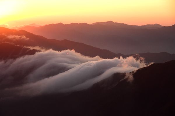 ![]() (9)雲が染まり始め、間もなく日の出 |