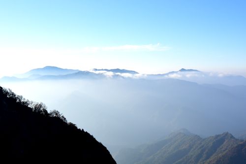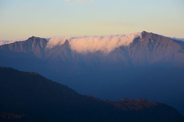 ![]() (1)水場コース。見た目より紅葉は多かったです。 ![]() (2)祖母山の横だけガスが湧いていました。 |