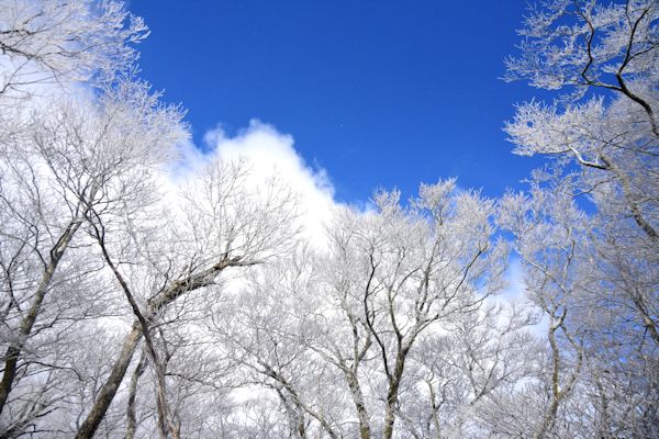 | 年が明けても公私ともに慌ただしい日々は続き、土曜日は博多で力仕事、日曜日は来週の仕事の準備しとこうか、なんて殊勝な考えが一瞬かすめたりしたけど、こんな時こそ「山じゃ!やま!」 しかも、ようやく冬らしい天気になったし、仕事なんて、「とんでもない、私は山に行きますよ」のココロです。 朝駆けにこだわるとどーしても、ルートが固定されるし、ここのところ黒金尾根登ってないし・・・ 雪が多いなら久々、痺れるような歩きをしてみたい、と気合い入れで祖母山テッパンルートを登ることにしました。 積雪がある時は1,200m過ぎた辺りから積雪量が次第に増え、1,400m過ぎた辺りから、雪で押しつぶされたスズタケと積雪で四苦八苦するところですが、今日は全然積雪が増えません。結局、スズタケの猛攻に遭うこともなく、普通に縦走路に到着。 でも、祖母山はガスで見えません(-_-;) 良かった〜朝駆けせんで(^^;) 積雪が多い時は吹きだまりになり、難儀する山頂直下のハシゴ場も難なくスルー。この辺りは霧氷というか着雪が凄く、時折、うっすらと青くなる空と一緒に、しばらく眺めてました。 山頂には、北谷から来た足跡が2人分くらい。そーコーしていると、一人。宮原方面に下っていると一人。 足跡を含め、4人ほどの静かな祖母山山頂でした。 |