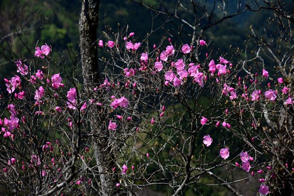 | 昨日は、中津の八面山平和マラソンに参戦。10kmなんで、翌日に山に登る体力は残ってる、はず。性懲りも無く、3週連続となる表記、山域を歩いた次第であります。まずは、気になるアケボノツツジの開花状況です。 【アケボノツツジの開花状況】 @1,000〜1,100m付近は満開もしくはピークを過ぎてます。。 A1,100〜1,200m 見頃でした。 B1,200〜1,300m 見頃〜蕾も有り今週まで持ちそう・・・ C1,300〜1,400m 開花も始まってますが、蕾も目立ちます。 ※七年山尾根〜桑原山〜万治越にかけて観察した印象です。 陽当たりでも咲き具合は違うので、山行の参考程度にしてください。 D五ヶ瀬観光協会の開花情報(二上山 1,082m) こちらの情報の方が役に立ちそうです(^^;) HP= https://gokase-kanko.jp/?page=tsutsuji E参考:過去レポ (2013年) 4月19日 (2014年) 4月19日 4月27日 ここからは、毎度、読み飛ばして頂いても構わない駄文。 昨日の疲れは、若干感じるも3週連続同じコース取り。のハズでした。出来ることなら、木山内岳まで歩こう! ヘッデンを点けて歩き始めると、ここのところ天気も良く、気温も高く、汗が滲み出してきます。 そろそろ、岩の門なんで、カメラを出そうとすると、「?」 動作は「エア−・カメラ」 次の瞬間「!!(-_-;) カメラ忘れた・・・カメラ固定用のベルトはしてるのに・・・ ここまで登ってきたのに・・・」、「さて、どーしよ」 これまで、単独でこんなことあったか〜? と思い起こせば、カメラ持ってきたけどSDカードが無かったこともあった(-_-;) そーいば、なおさんと由布岳に朝駆けした時、長崎隊と大船山の紅葉見物の時も・・・エアーカメラ(^^;) 少なくないな〜 でも、ここまで登ってきて、やっと気付くなんて、過去、最悪の失態。 とりあえず、車まで下る。1時間半のロスで同じコースを登り返すなんて・・・嫌だ! 結論は営林署の作業小屋付近から取り付く七年山直登コースを登り、桑原山〜万治越まで歩くことにしました。 開花状況は、上記のとおりです。全開状態の株を眺めると、花芽が少ない印象。でも、満開の大株も堪能できたし、万治越え付近の株も目一杯咲き、七年山〜桑原山のアケボノツツジを堪能することができました。 そろそろ開花ラインが1,400m付近に迫ってきたので、次回は、ステージを祖母山周辺に移してアケボノツツジ鑑賞の予定です。 |
