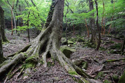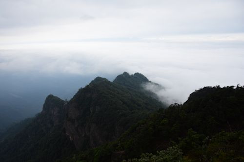 | ここの所の暑さで、ついつい朝駆けに走る昨今。そろそろ気合いを入れなければ、と手始めに傾山に登ろう、と思いつつ、英彦山常連のなっちさんちで夏エビネ見たもんで、ついつい、英彦山にあるものと勘違い。 そーなれば、傾山へ。当然、三つ坊主経由で、久々に官行コースで登ることにしました。天気は、前日から曇りの予報。家を出る直前、レーダーを見ると祖母傾周辺にはうっすらだけど雨模様・・・(-_-;) どーせ雨男だし、合羽上等! 一番、気になるのは、登山口までの林道の状況ですが、登山口まで1km弱の林道終点までは整備したようで、ノープロブレムでした。その先は整備した形跡は無く、荒れてますが、車高の高い車なら大丈夫です。 ただ、法面が壊れる心配(しすぎかも・・・)をして、登山口まで500m程の場所に駐車して出発〜 日の出の時刻を過ぎ、空を見上げると・・・やっぱ曇りかぁ・・・森の中、川を渉り時々、木々を見上げながら黙々と登る。 三尾まで着くと、ここからはいつもの道。行きは三つ坊主、帰りは水場コース。気温が低く風も吹く中、疲れも少なく思った以上に踏ん張りが効く。時折、写真を撮りながら山頂までほぼ4時間、山頂には8時過ぎに到着しました。 でも、やっぱ途中で見た様に、曇り空。幸いなのは、祖母山など1,700m越えの山にガスが掛かってたけど、傾山の山頂はクリアで、景色を見ることが出来て、遠くには、陽に照らされる由布岳も見えてました。 1時間休憩して下山するつもり・・・だったけど、なんだか青空ラインが近付いてるような気がする・・・でも、背後から後傾きを越えてガスが攻めてくる〜(^_^;) もう1時間、傾山で杭になることに。すると、祖母山の上が晴れ、ゆっくりですが晴れ間が広がってます。 雨男に完璧な晴れは贅沢かも(^^) 傾山周辺が晴れ始めると、祖母山方面では雲が湧き始めました。 先週、やっぱ祖母山、静か・・・と、思ったけど、本日、傾山は誰にも会わず、人影さえ見ることがありませんでした。 やっぱ、この時期はあんまり登らんよね〜 (^^;) |