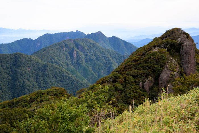 | 北アルプスを歩いて、というか以前から感じていたのは1回の山行で、もちっと長い時間歩かないと。 例えば、由布岳だと西峰往復だと正味3時間、お鉢回っても4時間。祖母山でも神原往復だと4時間。 朝駆けの使用頻度が高い神原からだと周回コースを取りにくいので、ついついピストンになってしまします。そんでもって、障子岳まで行こうか、と思いつつも毎度、国観峠まで気分が悪くなるほど頑張って、その先に行けない(行く気が起こらない)、というおバカな繰り返しです。 今回は朝駆けだったけど、荷物を重くしワザと数分の休憩を入れ、ボチボチ登り山頂に5時ちょうどに到着。おかげで、体力、気力共に余裕があります。 結局、障子岳往復で正味の行動時間は7時間、歩いた距離16km、登った高さ1,600m位でした。 ところで、山頂に着くと空は暗いけど、☆が見えん? ありゃ? 天気予報は行楽日和と言ってたけど・・・普通の御来光になるとは思ってたけど・・・ でも、深いガスとかじゃなくて、時折、雲の合間から☆が瞬き、東の水平線の空は開いていて、そこからは夜明けの濃いオレンジが漏れ出してます。少しずつ明るくなるにつれ、空気の透明度が高かった今日は四国や九州の遠くの山までよく見えました。 頭上にかかる雲までガッツリ焼けるのを期待しましたが、それほど焼けることも無く、微妙な感じの夜明けのショータイムは終わり、いざ〜 障子岳〜 祖母山頂を後にしたのが6時半、慌てずゆっくりペースで足をすすめ誰も居ない障子岳に到着。 山を眺めてると、いつも見えてる市房山の横に高千穂の峰っぽいお姿が。東に目を向けると英彦山も(多分・・・)。日頃、気がつかない山がよく見えた一日でした。 足元にはリンドウの蕾が朝陽が当たるのを待ってました。ここでも風が強く、10分程で退散し本日2回目の祖母山に向かいます。 思った程時間も掛からず、祖母山頂に着くとお二人+お一人がいらっしゃいました。が・・・お二人様が音源持参でjazzを・・・態度もふてーし 自分的には山の音源は騒音みたいなもんで、思わず、持っていれば「笑点」で対抗してやろーか、と。 以前は、朝駆けの時にラジヲを聞きながら登ってましたが、皆さんがくつろぐ場所となる山頂では音を消してました。山での話し声、叫び声は気になりませんが、人工的、個人的な音源は気になり始めるとダメで、ホントはここで長崎チャンポンを食べる予定だったけどパス!! もう一人の単独の方もさっさと下山しました。 せっかく、コンビニでお箸をもらったのに(-_-;) ひたすら、神原への道を下り、途中、五合目小屋裏の橋が流失してないことを確認し、駐車場に着くと7〜8台、車が停まってました。駐車場入り口付近の斜面は、いろんな野草が花盛りでした。 台風18号の影響も気になるところです。 神原までの県道は全く問題ありません。大規模林道から登山口までの道は雨の影響で数カ所、特に、入口付近の穴は要注意です。登山道も横から谷が入ってきてる付近は少し荒れてますが、歩くのにさしたる支障はありませんでした。 |