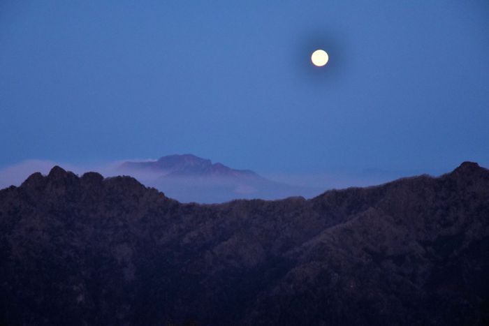 足の故障で1ヶ月半のブランクにより恒例三山詣が春の気配さえ感じる3月までずれ込んでしまいました。 傾山には昨年最後に登ってから2ヶ月振りです。雪が残ってるかもとアイゼンを持参しましたが、ただの重荷となりました。ただし三尾すぎた付近から地面が凍り、登りは大丈夫でしたが下山時に見事に転倒し、ケツと頭を強打。久々にたんこぶが出来ました。 枯れ木にぶつけたので出血は無かったけど、かなり大きなたんこぶで帰りの車の中でタオルで冷やしながら帰りました。ネットで検索すると翌日以降の症状に要注意とのことで、今のところまっすぐ歩けるし、呂律は回ってます。 見たい景色がある。そう感じて数年経過したけど休みや天気の都合が合わず、今回どうにか折り合いがつきました。昨年4月から、お気楽な身分となり淡々と休めます 見たい景色を見ることができたか? 傾山方面から障子尾根に沈む満月を観たい。概ね見られたけど想定からはほど遠い景色で次回にリベンジである。 日の出と月の入り時間を入念に確認し、この日に決定したけど全て初めて・・・ 日の出時間、月の入り時間、沈む位置を確認、空の明るさを想像しながら西の空の景色を想定。 撮影終了後は山頂に移動。当たり前だけどへーじつのこの時間は独り占め。天気はピーカンなので風を避けると暖かい。季節は春。景色はふつーで撮る写真も少なく山頂で1時間ほどのんびりして猫耳を何度も振り返りながら下山しました。 |