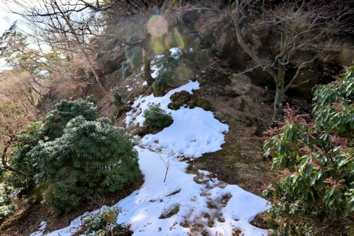 | 西米良スカイトレイルに参戦して感じたのは、自分の特徴、特性は何か?と考えたときに本来重い荷物を背負って登るスタイルだったはず。最近はトレイル中心のトレーニングスタイルだったので登る足が鍛えられているのか、重荷を背負って標高を稼いでるか、と振り返ってみると「否」 それなら久々に傾山に普通のスタイルで登ってみよう。鍛錬も含め三つ坊主ピストンでと思ってたけど・・・歩き始めると足が重い。なしか・・・ 良く分からないまま、何度山頂を諦めようかと思ったことか。寒くなってから登っていないので、冬用手袋、サーモス、挙げ句の果てにアイゼンもで持参。三脚は持ってないけど重装備にしたせい? 加えて、余計に時間が掛かかるのに拍車を掛けたのは、ストックを使わないルール。 途中一部区間辛くて涙が出そうになったので使ってしまいました。結局、山頂まで4時間半、今までで最高に時間が掛かりました 思い起こすに10月末に由布岳に登ったときは似たような重量で普通のタイムで登ったことを思い出しました。ちなみに傾山登山口から三っ尾までと由布岳の山頂までの標高差はほぼ同程度です。 そーいえば4日前に30kmの山ランしたような記憶・・・筋肉痛とか全然ないので忘れてたわけではないけど、疲労が残ってたんだ〜。しかも歩数稼ぎイベントも重なりついついムキになる性格が災いして山ラン翌日も休まずにせっせと歩いたりランしたり。体が休まるはずがない。 当初、三つ坊主ピストンとか考えてたけど山頂に着く前に却下。歩数を稼ぐなら九折越経由途中から林道を歩いて下ることにしました。 三尾あたりで陽の出を迎える予定が遙か手間で陽の出となり、赤く焼ける雲を眺めながら見れば由布岳に傘が載ってました。少し行くと朝陽で照らされた祖母山が眩しく輝き、朝駆けの方はきっと良い景色を目にしたに違いない、と思ってるうちに祖母山から障子岳辺りにガスがかかり、昼過ぎまで掛かってた感じでした。 ただ、時折障子岳は山頂が見えることもあったので逆に楽しめたかも。 山頂周辺にはまだ雪が残ってましたが、天気予報を聞き想定してましたがアイゼンとか全く不要でした。 山頂からの景色は良好。少しノンビリしてから九折越へ向かうと森は落葉し景色はスケスケでどこで止まって振り向いてもほぼ猫耳が見えます。この時期の特権です。何度も振り返りながら猫耳を見上げなかなか前に進みません。 九折越に着くと小屋の方から複数の声が聞こえテント泊の様子。今晩は盛り上がるんだろうな〜 林道経由で下ると坊主を見上げる箇所やまだまだ紅葉がステキだったり。2回目だけど前回はお初の靴で足の痛さが先になり楽しめなかった林道でしたが、途中の紅葉に何度も足を止め、嫁さんも見たかろうと思いザックから取り出して上を向けて堪能してもらいました。ザックが重かったのは嫁さんのせいか〜 登る途中や山頂でも見える景色を見せて二人で記念写真を撮りました。 何度も山頂を諦めようと思った傾山。肉体的鍛錬よりメンタルを鍛える結果となりました。(2023.11.23) |