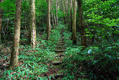 ![]() (8) 地図「4.階段始」 ほぼまっすぐ直登なので結構急登です。階段は磐座までです。 |