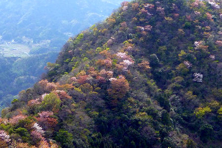 ![]() (14) 歓声があがった石井山方面の山桜。 本当はもっと綺麗でした。 |
