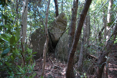 ![]() (5) 聖水岩。キリシタン大名・大友宗林の第3子(田原親盛)が後に城主となり、司祭ペトロゴメスを招き、香下に伝導宿泊所を設置、400名が洗礼を受けたそうです。 その時に利用したのかもしれません。 |