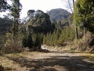 (2) 駐車スペースと登山口。右側の2本杉が入口。 |