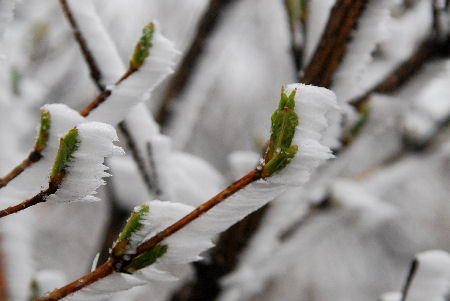 | 今回は当初、長崎隊のメンバーと九州山地方面にキャンプ泊縦走の予定でしたが、天気がすぐれないということで、由布岳塚原ルート+αを楽しむという一方的な提案により、東登山口に9時集合し、先週歩いたルートを歩きました。 このルートを他の方と歩くのは初めてで、これまで何度か登りましたが人にすれ違ったことも無いのである意味初体験的行動となりました。他の由布岳のルートと違い踏み跡は弱いし、最初は急登だし、長崎隊の皆さんも、少々不安だったかもしれません・・・。天気がよいと気持ちよい自然林の下の登りとなりますが今回は寒気の影響で灰色の空と冷たい風のせいで登っている間は暑いのですが、止まると急激に寒くなると言う典型的な冬場の状況です。 途中、楽しみにしていたヤマシャクヤクは蕾は膨らんでいましたが、もう少し先になりそうです。ここを過ぎるとこれまでの植生が次第に変わりガスもかかり幻想的な景色となります。ただ、これが一人だとちと不安になるかもしれません。 お鉢の道に出てからどちらに進むかということで、初めての方もいたので岩場を登るルートの方が良いかなぁ、ということで東峰に進みました。岩場の最後の場所で小さい樹氷が付いていて、おーっ、と歓声をあげていると、先を進んでいた長崎隊から「もっと凄い〜!!」の声が。あわてて登っていくとお鉢の内側は真っ白、お鉢巡り沿いの木々も結構大きな樹氷が付いていました。その時は、こんなこともあるかなぁ〜、と思いましたが、でも4月26日。そんなことで山に登る際は慎重に、と改めて感じた次第です。 以前、県南の山間地に住んでいた頃、その地域の言葉で「のーしろがん」という言葉がありました。漢字にするともう少し意味が解ると思います。「苗代寒」です。山間地ではちょうどこの時期は苗を作り始めということ、この時期にしばしば寒気が来ることを地域の農家の方は経験で知っており、寒さ対策を怠らないようにという意味だと思います。今回はまさにこの「のーしろがん」でした。 季節はずれの樹氷を楽しんだ一日でした。 長崎隊の皆様、お疲れ様でした。 |