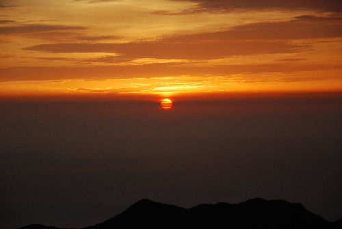 | 今週末の予定は性懲りもなく傾山へと思いを馳せておりましたが、天気はどうやら雲行きが怪しく、天気予報によると土曜日は午後から雨が降るとのこと。ということは山の上の降り始めはもっと早いかなぁ、と思い、傾山を諦め久々に由布岳に登ることにしました。 傾山(三つ坊主経由)まで行く気合いを由布岳に移し替えたとき、プチボッカ、ご来光登山がセットかなぁ、ということで、正面登山口を3時過ぎに出発しました。歩き始めると今日の天気を予感させるような生暖かい南風が吹き上げてきます。重荷に喘ぎ、汗まみれになることを想定していたので最初から半袖で登りましたが、登るに連れ空気もひんやりしてきて、山頂に着いたときはさすがに一枚長袖を着込みました。 足には負担を感じながらののぼりでしたが、なんとか日の出前に東峰に到着しました。 思ったほど天気の崩れは小さく、まずまずのご来光を眺めることができました。天気が崩れるとの予報から朝焼けで西峰が焼けるかなぁ、と期待しましたが普通に朝日に照らされました。くじゅう方面を見るとむしろ天気は回復しているように見え、くじゅう連山も朝日に照らされていました。 ひょっとして、先週末の天気予報のハズレの繰り返しかい!?、やっぱ傾山に行けば良かったかなぁ、と少々悩ましい空模様でした。 東峰で30分ほどご来光を楽しんだ後、お鉢を歩きました。ぐるっと回ってミヤマキリシマやその他の花の咲き具合を見物しましたが、ミヤマキリシマは殆ど咲いていません。イワカガミがポツポツ咲き始めいていました。マタエより下ではバイカイカリソウが咲いていました。 2時頃出発する時に起きていた嫁さんでしたが、9時過ぎに家に帰り着くと、嫁さんが人の顔を見て曰く、「もう、帰ってきた!?」と。 本日はスナップ写真風にて報告です。 |
