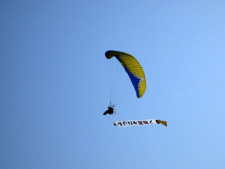 ![]() (3) 空からパラグライダーのお出迎え〜 ※Aさん提供。 当日、一気登山に参加され写真を提供して頂きました。 ありがとうございました。 |