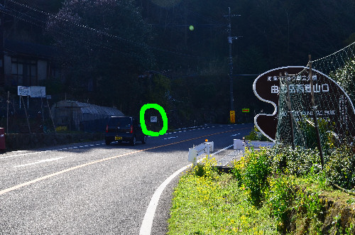 (3)地図「1.登山口」 県道に出た所で丸の所が登山口です。 |