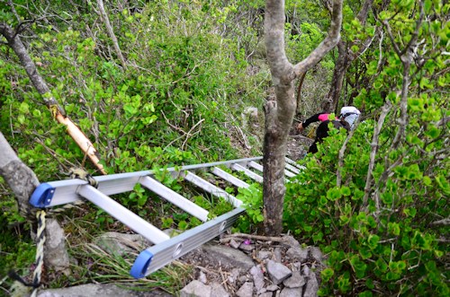 ![]() (3)以前は木製のハシゴでしたが、そちらが崩壊し 新しい道にはアルミのハシゴが掛けられていました。 |