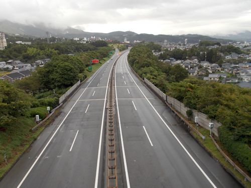(6)すぐに高速を渡ります。今日はこの時間別府から先は通行止めだったようです。 |