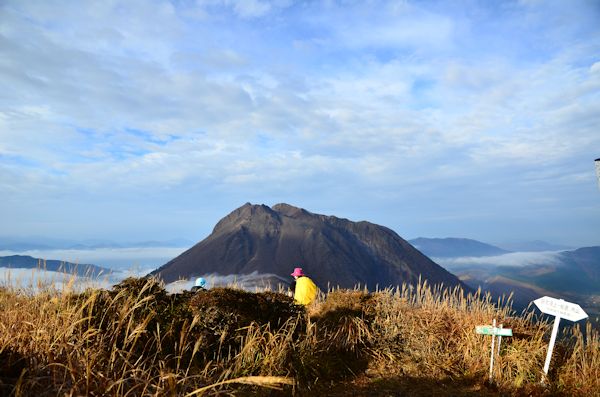 ![]() (7)鞍が戸山頂より。神々しい由布岳。 |