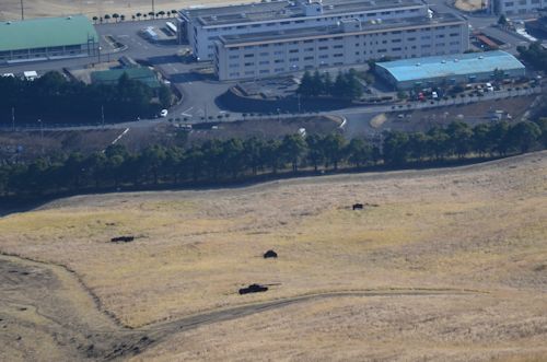 ![]() (3)縦走路と由布岳。うっすら白いものが見えます。 |