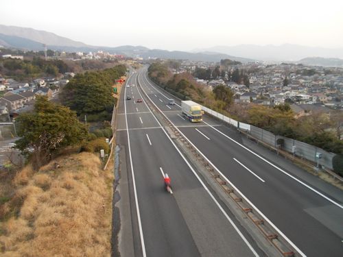 ![]() (5)高速道路を渡って見上げる鶴見岳。 |