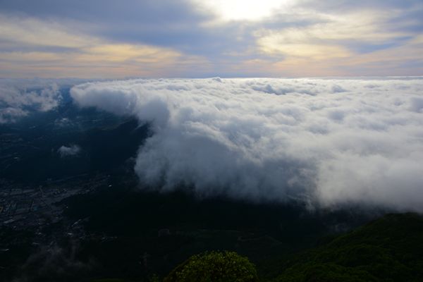 | 本当は、天気が良さそうな日曜日に傾山に登るつもりだったけど、諸般の事情により急遽土曜日の午後からの由布岳となりました。天気の回復を考えて午後スタートで由布岳夕駆けに加えて、たまたまレポを見かけ、これまで殆ど足を踏み入れた事がない青梅台方面を組み合わせる事にしました。 な訳で、「など」を追加した次第です。ついでに、と言う訳ではありませんが東登山口から由布岳に取り付き、途中から塚原ルートへワープして西峰に登ることに。 正面登山口を12時半にスタートしまずは青梅台へ。以前、電波塔付近まで歩いた記憶をかすかに思い出すも、その頃は青梅台のピークがあることも知りませんでした。 遊歩道が整備されているので、それほど歩きにくさは無く、途中、何度か管理道とクロスしますが、さほど違和感無く歩けました。ほとんど眺望がありませんでしたが、木々の合間からガスが晴れたり掛かったりする由布岳が見え、夏場の散歩コースには良さそうです。 今回、このーコースに歩いた理由は、このコースをまっすぐ進み猪瀬戸を経由し東登山口へ歩くレポを拝見したからです。そんでもって、降り口が分かり難くて・・・キチンとしたルートはあると思いますが、少々薮こぎに(^^;) 目印の付いたルートに出ると、そこからはトラロープも張られ、猪瀬戸まで問題無く下ることが出来ました。 そうそう、猪瀬戸の散策路も歩いて見たかったし。ただ、正面登山口にある周辺の概念図は正直分かり難くて・・・できれば普通の地図の方が有り難いなぁ、と感じた次第です。 前後して、たまたま見かけた登山用GPSアプリ「ジオグラフィカ(Geographica)」のお試しです。 どんなアプリ? 以下が、公式HPの冒頭の説明です。 「オフライン環境でも使える『キャッシュ型オフラインGPSアプリ』です。一度表示した地図は自動でアプリ内に保存されます。携帯圏外の山奥でも海の真ん中でもスタンドアローンで動作し、地図表示とGPSナビゲーションを実現します。」 前日に、歩くであろう由布岳周辺の地図をダウンロード、歩き始めにログを開始、下山後データを我が家のPCに送信。当たり前だけど届いてた! 途中のポイントの入力も簡単でした。 いつも、使用しているデータロガーに比べると精度は欠けるモノの、自分の位置を確認し概ね歩いたログを確保する程度なら十分かと。当然、画面が大きい分地図は見やすいし、位置の把握は画面が小さいGPSより見やすいです。 猪瀬戸から東登山口までは少々怪しいルート取りとなりましたが、これまた、途中で正式ルートに合流。 東登山口から少し入った、東やで休憩していると、いつも駅で会うお知り合いと遭遇し、本日の山情報などを交換。 日向越付近で「クマガイソウ(?)の場所を聞かれたんですが・・・」、「あ〜・・・(ちょっと説明)」 情報では盗掘されたとのこと。改めて確認すると殆ど無くなってました・・・(T_T) 情けない・・・ 途中からこれまた久々の塚原ルートへ合流。あとは西峰に向かい、17時前にだれもいない山頂に到着。 でもガス(-_-;) まぁ、そのうち晴れるやろ〜 鶴見岳方面から吹いてくる風にガスが吹き上げて、山頂を覆いますが次第に覆われる時間も短くなりました。残すは西側の夕日を覆う雲が中々晴れません。 諦めて、下り始めマタエを過ぎた辺り夕日が(^^;) こんなこともあるかとしばし立ち止まり染まっていく空を眺めておりました。 下山後、グラフィカで確保したログをメールで送信、帰宅して確認すると届いてた〜 早くからスマホを使ってる方々には当たり前の事とは思いますが、世の中の進歩に感動! |