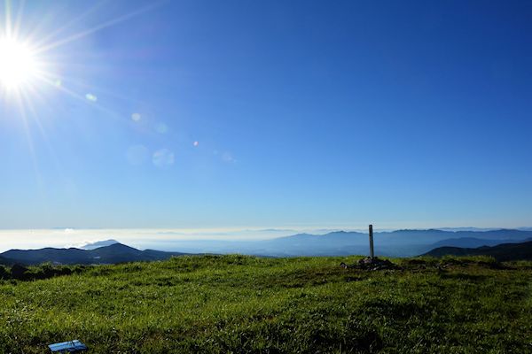 | 10日ほど前に由布岳に登った時も暑くなったと書いたけど、ここ何日かの気温はハンパない・・・ 昭和のエアコンの無かった時代のことを思えば、なんて夜はエアコン付けず扇風機で乗り切ろうとしたものの、あまりの寝汗にすぐさまエアコン発動! 午前中もなんとか昼まで、と頑張ってみたモノの早朝ランで燃えた身体を冷やすのに10時にはスイッチオン(^^;) こうやって熱暑耐性が低下するんかな~ こちらではレポしてませんが、お盆の3日間どんなもんやろ~ と朝ランに取り組んでみました。 長距離する方にはごく当たり前のトレーニング。特に夏場のクソ暑い時期には距離も踏めるし、熱中症対策にもなる! さらに、朝一エネルギー補給せずに走ることで脂肪消費が早くなり脂肪消費の「クセ」がつくとのこと。 毎日続ける気はないけどとりあえず初日は6時頃からスタート。 東の空に雲が広がり、これがいい感じに焼け、それが海面に反射して海の朝駆けも良いじゃん(^o^) しか~し、折り返す手前から陽が登り、復路はカチカチ山~ 走った距離は10km。 翌日はもう少し早くと言っても10分位。雲がほとんど無い・・・ほぼ昨日と同様な走りっぷりで、走った距離は12km。 3日目最終日は5時頃スタートすると三日月に金星がまだ東の空に輝いてる。でも、そんなに涼しくないぞ(^^;) 早くスタートしすぎた? 海岸線を走ってる間に日の出が来ないかも・・・と、とにかく海岸沿いを走り陽の出を確認して折り返し。途中、太陽光発電施設の中に除草のためヤギ放牧中。夕方、見物に来ると計10頭。走った距離は14km そんな3日間。2日目、3日目の走り始めは少し身体が思い感じもするけど、以外と走れたし夕方まだ暑さの残る時間帯に走るより楽だったかも(^^) そんな3日間の後の4日目。傾山に行こうかな~ でも、疲れが抜けてないかも~ 爺さんは由布岳の朝駆け程度にしとこ。 途中のコンビニに立ち寄り時間を逆算すると、ちょっと遅くね・・・うんうん。陽の出前30分になるかもよ(^^;) 3時前の駐車場に着くとぱっと見10台以上がすでに駐車中で登り始めてる方もいる。 ばたばた準備をして登山口に立ったのが3時8分。スイッチ・on! 途中の風は生温かく全然爽やかじゃ無い(-_-;) それなりのピッチで登り合野越えに着くと、結構早いじゃん。朝ラン堪えてないかも~ 結局、山頂には陽の出1時間前には到着し、夜の帳が明けつつある真夏の夜に間に合いました。 西の空は濃いオレンジラインが薄く広がるも、圧倒的に夜の面積が広く東の空には三日月と金星と真夏のオリオン様。 東の稜線はどうやら四国の山々、北側は山口県の山々や島が見えてます。少し明るくなると豊後水道を挟み、佐田岬半島もクッキリ。英彦山系や遠くには普賢岳らしき姿も確認できました。 雲一つ無い&視界良好のド級のピーカンで地形確認には良い一日でした。ガスの沸き上がりが無く盛り上がりに欠けるものの、陽の出までの空の色のグラデーションは堪能出来ました。 久々に直射日光に曝されるのを覚悟で飯盛ヶ城へ。花目的だったんですが留守にしてました。 山頂で風を感じた後、緑眩しい飯盛ヶ城の斜面を一気に下山し、クーラーの効いた我が家へ避難しました。 |