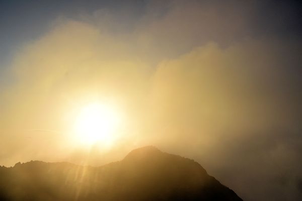 | 土曜日に傾山に登ったばかりだったけど天気の回復具合と寒波の入り具合に期待して朝駆け! 見ると10月は由布岳は登らず。前回の記録を見ると大撃沈だった。思い出した・・・ 何もかも濡れてしまい久々ザックの中身を全摘、乾燥しカッパも洗濯したりと散々な9月末の山行から約1ヶ月。 我が家を出る時は皓々と輝く月を見上げながら、今日はピーカンかも~ 撃沈するよりマシか・・・ 塚原辺りから見上げる由布岳のシルエットは山頂辺りがボンヤリしてる、かも。 正面登山口に着いて山頂を見上げるとかなりの速さでがすが山頂をかすめてる。まぁ、天気予報的には晴れるやろ、と陽の出1時間前をめどに正面登山口を3時半頃スタート。 土曜日のふきのとうの余韻がまだ残っている・・・ふきのとうの曲も当然ながら、スピンアウトのように「青春の影」、「君と歩いた青春」。ふきのとうの歌詞より少し大人な感じ。「青春の影」の設定、想定に対して解釈が様々。 「君とあるいた青春」は伊勢正三の曲だけど太田裕美が歌った方が好きだったなぁ(^^) 今日は、ふきのとうとこの2曲がグルグル~♪ 山頂に近付くに連れガスが濃くなる訳で、これは想定内。しかし、山頂のガスは晴れない。時折、湯布院の街灯りが見えるけどあっという間で、写真を撮る余裕は無い。結局、陽の出までにガスが晴れることは無く、ガスがオレンジ色に染まり、陽の出したことを知らせてくれました。 しばらくして、ガスも概ね取れるも視界がイマイチでやっとくじゅう連山が見える程度。さっさと下ろ。 マタエが見えた頃、マタエに居る方から「おーい」、「?」、再び声がかかり「! やあ!」 地元の駅で良く挨拶してた山女子でした。今日は由布岳&鶴見岳方面で紅葉三昧らしい。 休憩中だったので地元和菓子やの饅頭を美味しく頂きました(^o^) ありがとう! その後はトコトコと下る。暗闇の中を登ったので由布岳の紅葉を見るのは初めて。合野越より下が良い感じでした。 当然のことながら登山客は多く、駐車場はごった返してました。 |