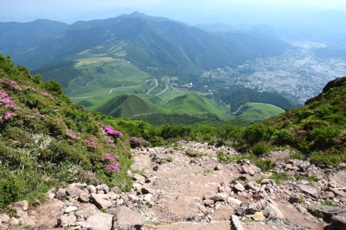 山頂に着くと、登る途中でお話しした妙齢の女性2人組と再び遭遇。一人は東京、もう一方は三重からで数日前に急遽九州への山行を決め、当日大分入りしてまずは由布岳に登ったそう。もう少し、早い時間から登っていれば、お鉢をお勧めしましたが、流石に今からだと厳しい。しばらく、由布岳のルートなどについて説明。明日は、阿蘇山、くじゅう方面を歩くらしい。