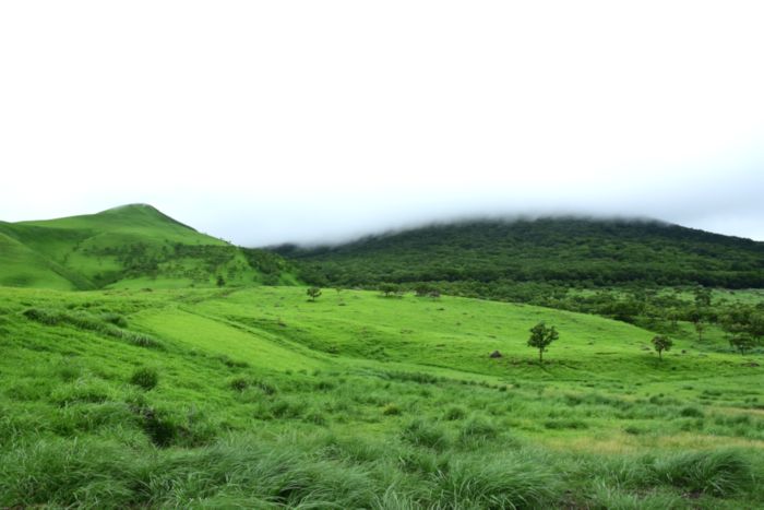 下山後、振り返ると夜中よりガスが下がった印象。撮った写真も最近では最低ではと思うほどで、下山後の草原の写真が一番多かったかもしれません。