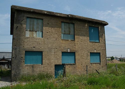 ![]() エンジン調整室。この建物にも機銃掃射のあとがあります。掩体壕を含む航空隊の建物の跡の多くは民間の方が使用されている場所が多く見られます。 |
